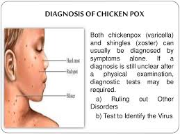 Your health care provider can most often diagnose chickenpox by looking at the rash and asking questions about the person's medical history. Small blisters on the scalp confirm the diagnosis in most cases.